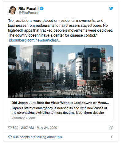 Meanwhile, Germany has opened back up, no issues. In Japan, they did none of the drastic measures we saw enacted and they’re about to re-open.
