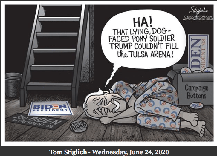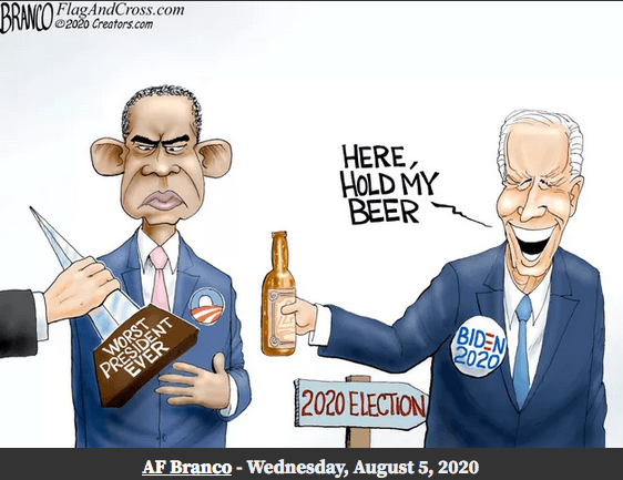 Obama: If you like your doctor you can keep your doctor. Of course after ObamaCare went into effect millions lost their policies and their doctors. If Harris/O’Biden ticket wins you can also kiss your affordable gas goodbye along with your job, your feedom, the economy, et al.Emails, text msgs, and eye-witness testimony reveal that Joe (aka the Big Guy) was syphoning off the top from Hunter’s payoffs by foreign governments and corporations OblameO sent Rice out to lie on all the cable and MS news channels about an obscure, unseen anti-Muslim video as the cause of the orchestrated attack on our consulate in Benghazi that just happened to coincide with the anniversary of 9/11.No ones knows what’s wrong with Chief Justice Roberts. A man who should have become a reliable conservative (interpreter of the Constitution as written) has too often irrationally sided with the liberal (justices who believe they are there to MAKE law not uphold it) side of the court. Libs never betray the Left agenda so why are conservatives so prone to this affliction?Biden doesn’t want to leave the security of his basement bunker.IndoctrinationThe Dims keep inventing fake news that gets more ridiculous with each cycleThe Hand OffThis is about the infamous Jussie Smollett hoaxJoe Biden actually called a young woman supporter by this phrase which ranks as one of the most bizarre things he has said publicly.