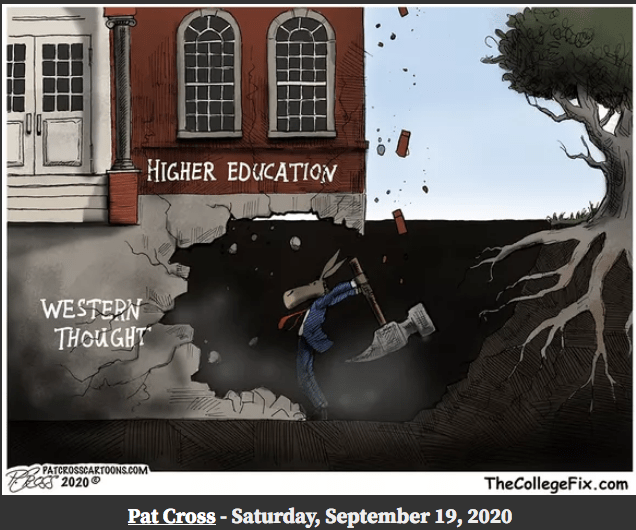 In the past year, the curtain pulled away and the con was exposed. You can stay home and tele-learn without stepping foot on a campus — a poor substitute for live teaching, but not so poor a substitute given the cost, the debt, and the indoctrination. The advantage of a Princeton or Stanford degree is now exposed not as proof of a superior education, but simply the purchase of a cattle brand to separate one’s future career from the herd — not much different from having Michael Jordan’s name on an otherwise pedestrian pair of tennis shoes.