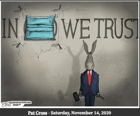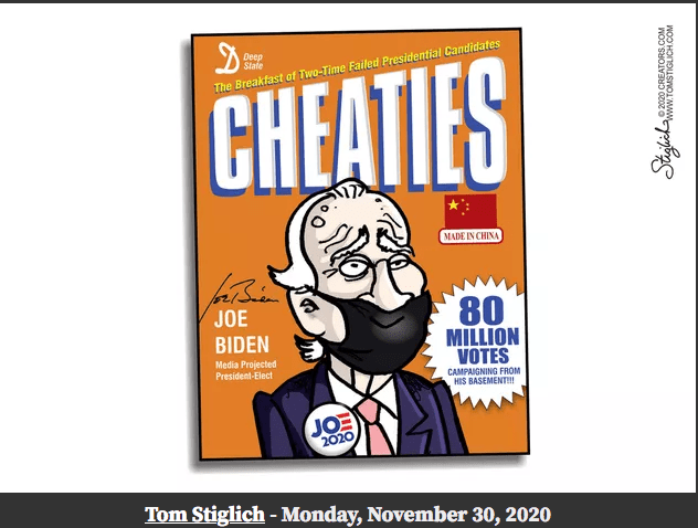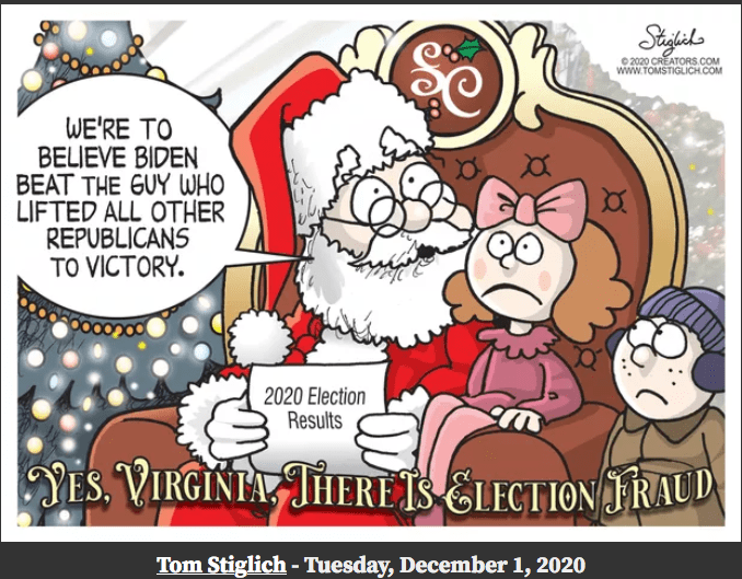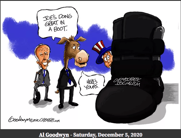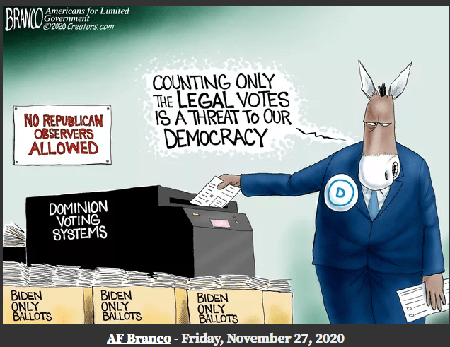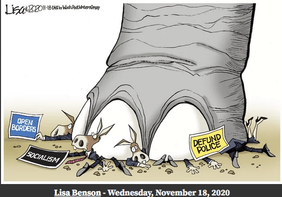 Democrats have been cheating with dead voters, ballot fraud, rigged voting machines, intimidation at polling stations, lack of voter ID, ballot harvesting, mail-in ballots, noncitizen voters and more – for many decades now. It has been allowed to stand in democrat-run states, counties and cities because of their total corruption, crooked judges, bought-n-paid-for DAs, and a sycophantic press. But now Democrat run vote fraud, in Milwaukee, Atlanta, Detroit and Philadelphia (and we could add Phoenix and Las Vegas), in this past presidential election, has moved to a blatant, coordinated, full frontal, shameless attack on our Constitutional Republic, the voter, our freedoms and our liberties. If not acknowledged by the courts and the election restored to President Trump and this system of voter fraud permanently eliminated our nation will be lost forever and become a lawless, one party dictatorship run exclusively of, by and for the democrats. Chauncey Gardiner (Chance The Gardner), in life imitating art, has amazingly and bizarrely become the president-elect of the United States. The democrats have actually, through the most blatant and obvious election fraud in U.S. history, placed a mentally challenged, delusional (the whole crazy Corn Pop story just for one), senile, decrepit old man into the White House with the full intent of replacing him (either through assassination or the 25th amendment) with Kamala (aka Commie) Harris who was so radical and disliked she had to dropout of the 2020 democrat primary! This could not be made up. No one would consider or believe such an outlandish plot to a Hollywood movie. Yet here we are. Among Republican (i.e., informed) voters it is 97%.Wow! This guy better not walk alone, in the dark, at night.So said stolen-presidential-election BidenRecounts don’t matter. Audits of ballots is what matters. Democrats use recounts to add phony votes to their losing totals.This is true. The democrats were stomped on by the Republicans everywhere in the down ballots except the four corrupt democrat-run cities (Detroit, Philadelphia, Milwaukee, & Atlanta) where early morning-after felonies were committed and votes were dumped into the Dominion voter machines to illegally swing the election to BidenThis is the insane nut-job Dr. Rachel Levine, Pennsylvania’s transgender health secretaryThe MSM reminds me of the T1000 TerminatorThis is only a small part of the Leftist indoctrination of your children when you send them and your dollars to most of our colleges and universitiesAnd the American (aka democrat) press simply ignores anti-Christian violence at home and abroadSuch a great cartoon! So clever and true.democrats always give each other bogus awardsWhy would democrats want to kill off the small businesses in their States? Because they don’t need them to stay in power, they are a threat to their power, and as communists they hate the middle class.See cartoon below.See cartoon above.This lying democrat bastard never goes away. He lied about our troops in Vietnam, he lied about out troops in Iraq, and he lied about the Iran deal (he made under Obama) to allow Iran to develop nuclear weapons.So perfect.Such a great job of packing all of Biden’s handlers into one frame.