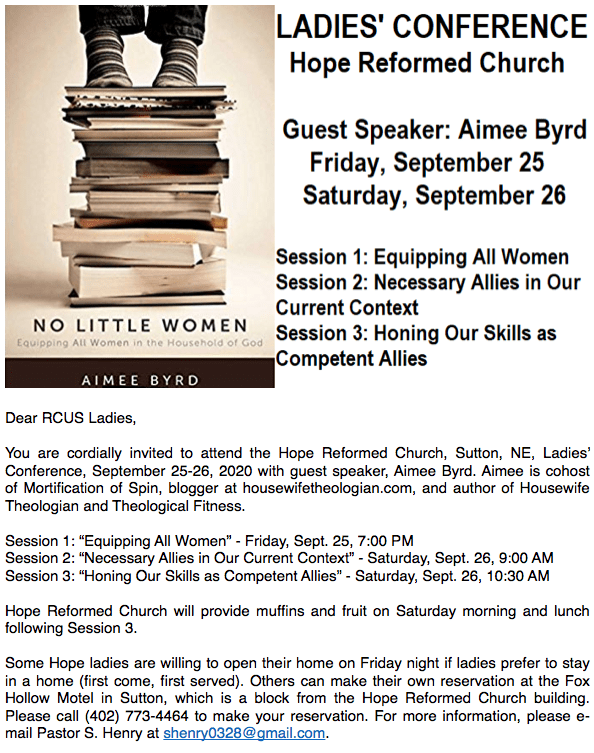 In conclusion, let me as a duly ordained pastor and officer in the church of the living God, with all love for the glory of God, the honor of scripture, and the souls of women, say to Aimee Byrd: