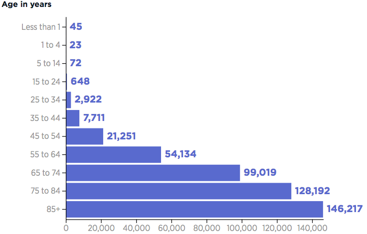My cmnt: It should be noted that the vast majority of these Covid deaths (and remember that there is a huge financial incentive from the democrats to report any death as a Covid death whether Covid was responsible or not) occur among people that have already outlived the average lifespan.