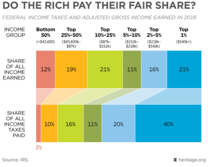 My cmnt: The only caveat I would add to this data is that the super-rich (i.e., Bezos, Buffet, Gates, etc.) pay almost no federal income taxes because they do NOT receive a salary commensurate with the wealth they actually own. For instance Buffet only pays himself a modest salary to run Berkshire Hathaway while he receives additional billions in wealth every year.