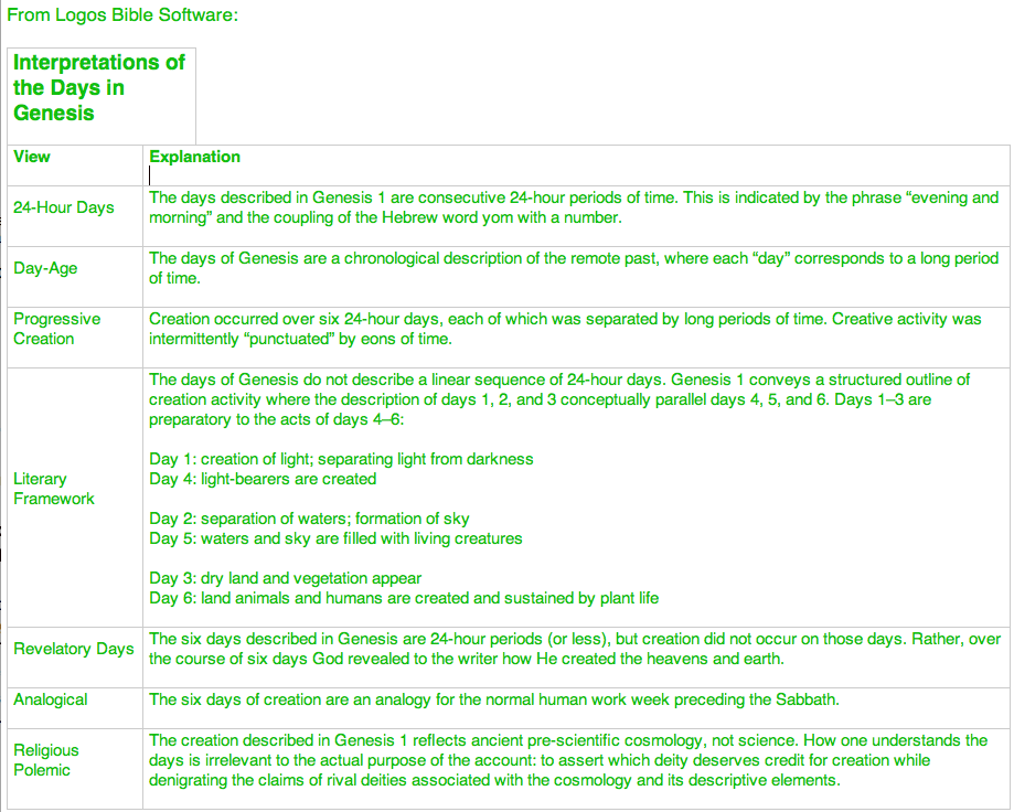 Genesis one is best understood as a literary, theological framework for God’s creative activity given to us by the Holy Spirit through Moses in Genesis 1:1-2:3.