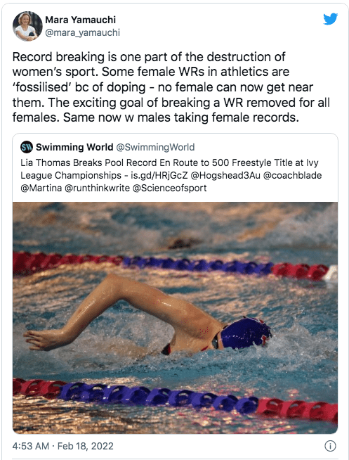 However, the NCAA said last week the Administrative Subcommittee of the Committee on Competitive Safeguards and Medical Aspects of Sports (CMAS) decided that it wouldn’t alter its testosterone guidance after all, stating that “implementing additional changes at this time could have unfair and potentially detrimental impacts on schools and student-athletes intending to compete in 2022 NCAA women’s swimming championships.”