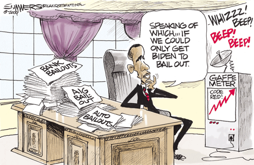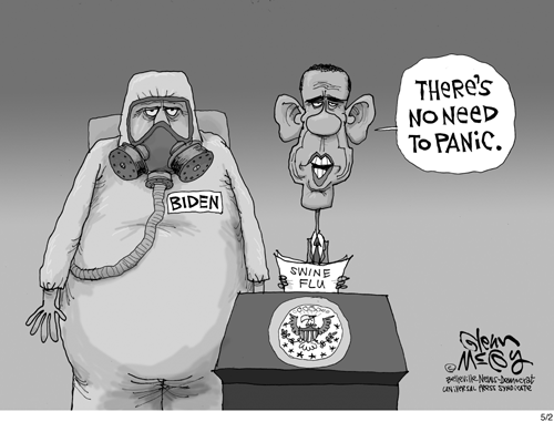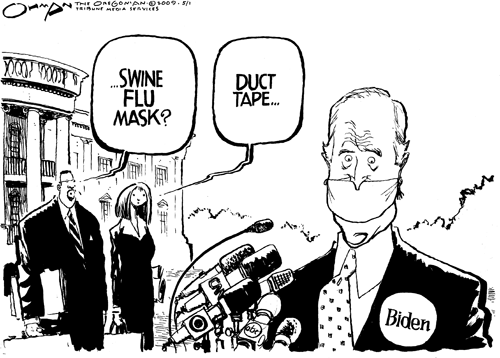 I pulled these cartoons from my file. They show Joe Biden already a gaffe-producing idiot, Barack Obama a disaster of a president, the taxpayer bailout of democrat-induced bank failures and malfeasance, Nancy Pelosi evil, Algore global warming lies, and the Chinese coronavirus (H1N1) swine flu trying to be made into a pandemic by the Left.