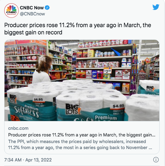 My cmnt: Now the O’Biden regime has gone into full spin cycle as it washes the news clean of any truth, blaming this unprecedented, rapid inflation on Covid-19 recovery, Putin’s war in Ukraine, phases of the moon and rabies.
