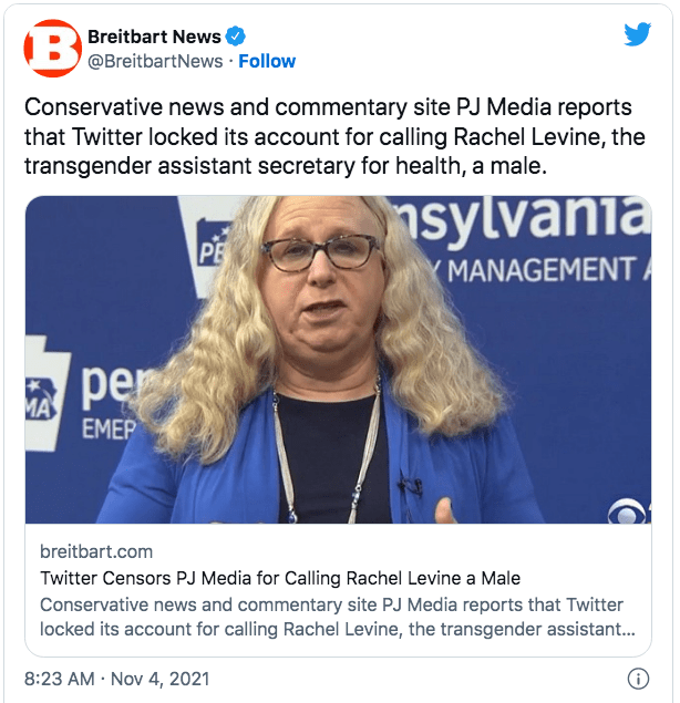 “Dr. Rachel Levine, the transgender assistant secretary of Health and Human Services (HHS), has been named one of USA TODAY’s Women of the Year.” …