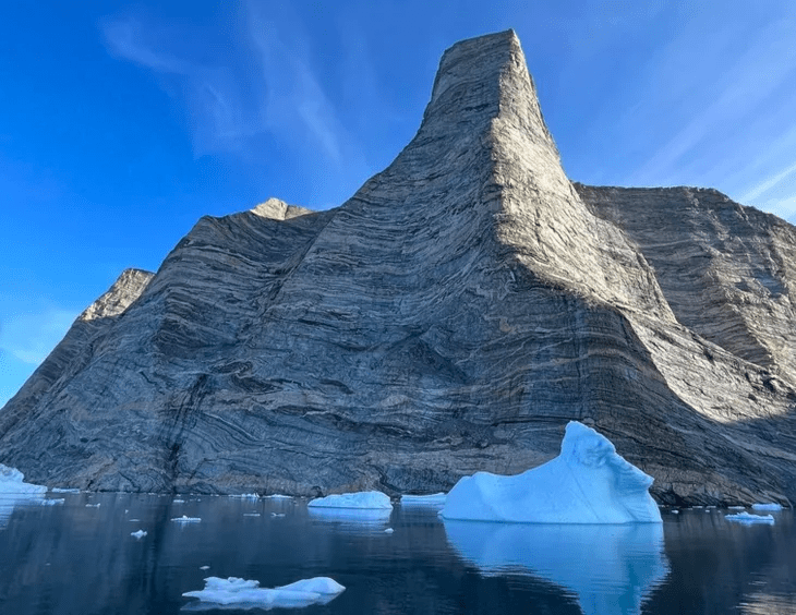 - The cliff face rises nearly 4,000 feet out of the water in a remote area of eastern Greenland.