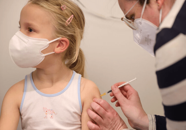 A child in Germany receives a COVID-19 vaccine / Getty Images – The utter foolishness of giving a largely untested and completely unnecessary vaccine to a child wearing the conditioning mask. Children 18 and under have a nearly zero % chance of either getting seriously ill or dying of Covid-19.