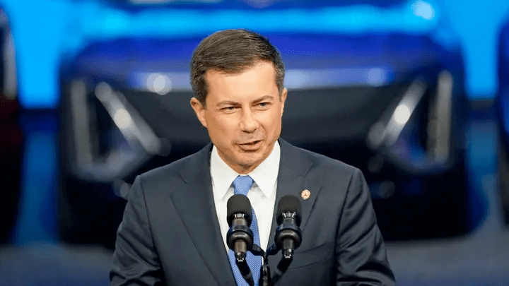 Secretary of Transportation Pete Buttigieg speaks at the North American International Auto Show in Detroit on Sept. 14, 2022. (AP Photo/Paul Sancya)