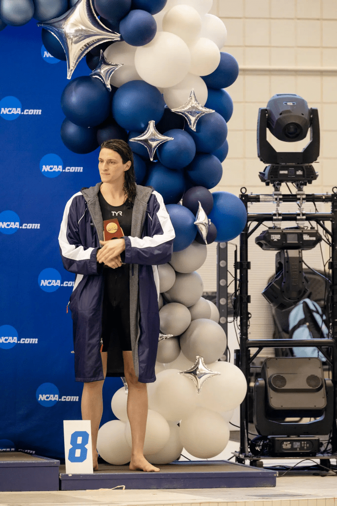 And she ranked 65th in the men’s 500-yard freestyle but won the title as a female.