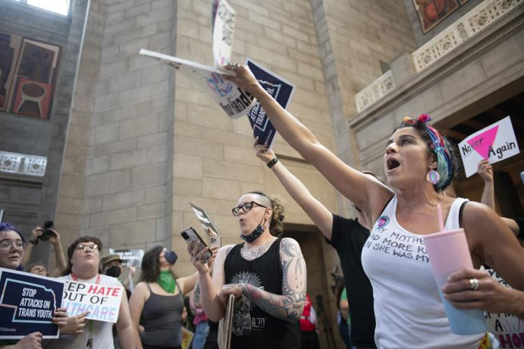 Before Nebraska lawmakers gave their final approval Friday to a controversial bill that will ban some gender-affirming treatments for transgender youth and outlaw abortions after 12 weeks, the State Patrol arrested six protesters at the statehouse.