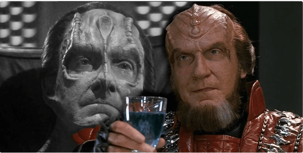 David Warner’s full-on villainous turn as the evil Cardassian Gul Madred in the Star Trek: The Next Generation two-parter “Chain of Command” is perhaps his greatest Star Trek role. When the Cardassians capture Captain Picard while he’s on a secret mission, Madred personally conducts the Starfleet hero’s torture and nearly succeeds in breaking Picard’s will. “Chain of Command” is a master class between the two Shakespearean-trained thespians, and Trekkers will never forget Madred trying to convince Picard that he sees five lights (Madred being the fifth). But when he is rescued, Picard defiantly yells, “There are four lights!” and defeats Gul Madred’s sadistic manipulations at the end of the unforgettable Star Trek episode.