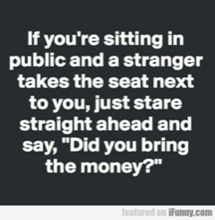 – Today a man knocked on my door and asked for a small donation towards the local swimming pool, so I gave him a glass of water.