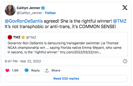 Speaking to TMZ, Jenner explained, “It’s not transphobic or anti-trans, it’s COMMON SENSE!”
