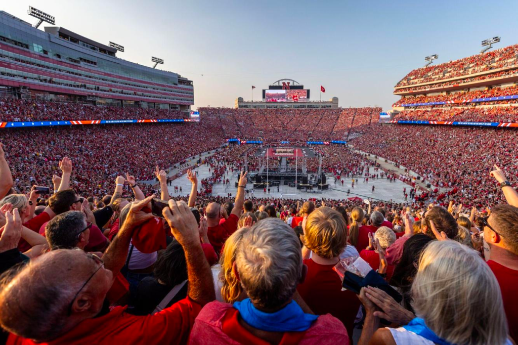 Fans make their way in to see Nebraska take on Omaha during Volleyball Day at Memorial Stadium in Lincoln on Wednesday, Aug. 30, 2023.CHRIS MACHIAN THE WORLD-HERALD