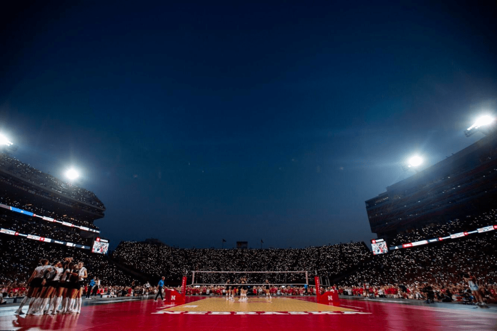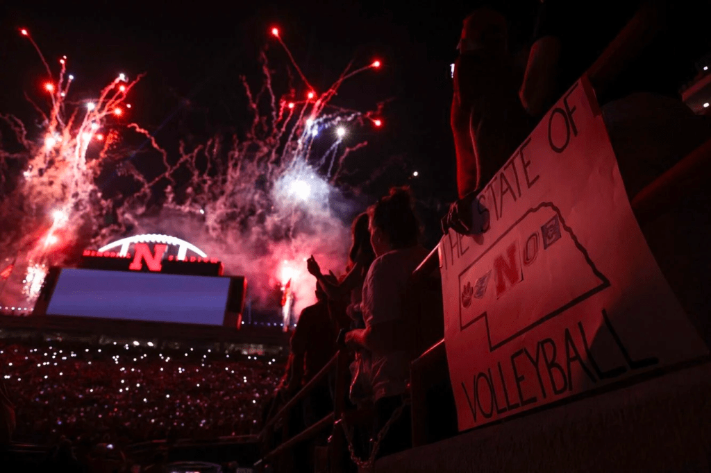A world-record 92,003 fans watch Nebraska take on Omaha during Volleyball Day at Memorial Stadium in Lincoln on Wednesday, Aug. 30, 2023.CHRIS MACHIAN THE WORLD-HERALD