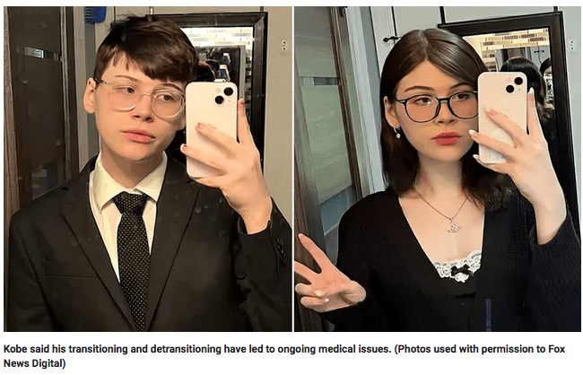“I was like, ‘Oh, wow, this is so great. I’m locked in my transition. . . . But then everything started to crack, and I couldn’t ignore the complications,” Kobe said. “I couldn’t ignore that I mutilated myself pretty much with the permission of a psychiatrist. It’s insane now, looking back. It’s just self-harm, you know.”