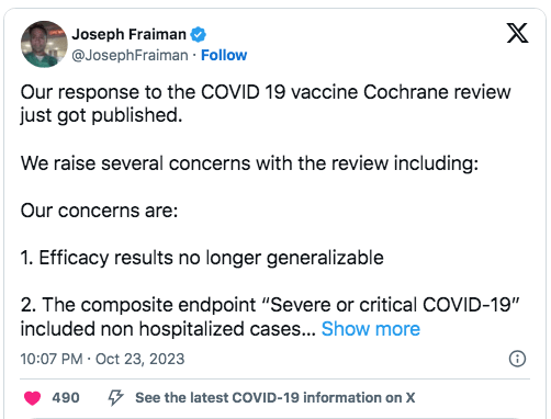 Several scientists led by University of Maryland pharmacy professor Peter Doshi, also a senior editor at the British Medical Journal, formally challenged a Cochrane review of COVID vaccine efficacy and safety updated last year.