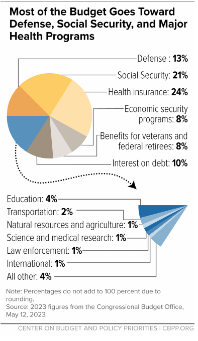 As the chart below shows, three major areas of spending make up the majority of the budget: