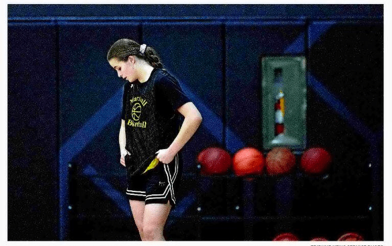 Chloe Johnson takes to the court for practice at Marshall High School in Duluth, Minnesota. The 14-year-old is the star of the varsity team even though she has been challenged by OCD since she was young. TRIBUNE NEWS SERVICE PHOTO