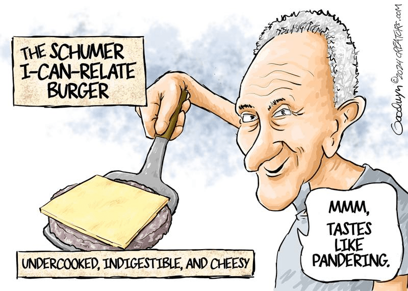 This is now the greatest picture in all of politics lmao. If anything ever virtue signaled the fake bullshit everywhere in our government, it’s Chuck Schumer putting cheese on a raw burger on an unlit grill right next to fully grilled hot dogs with him holding one on the spatula to signify his intent to flip it. Oh and no smoke whatsoever. Note: there’s no political message here … Just bullshit lol – ebc2021 on X