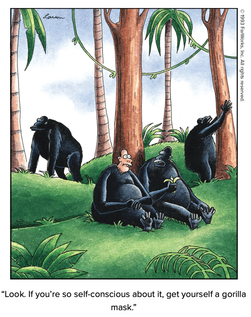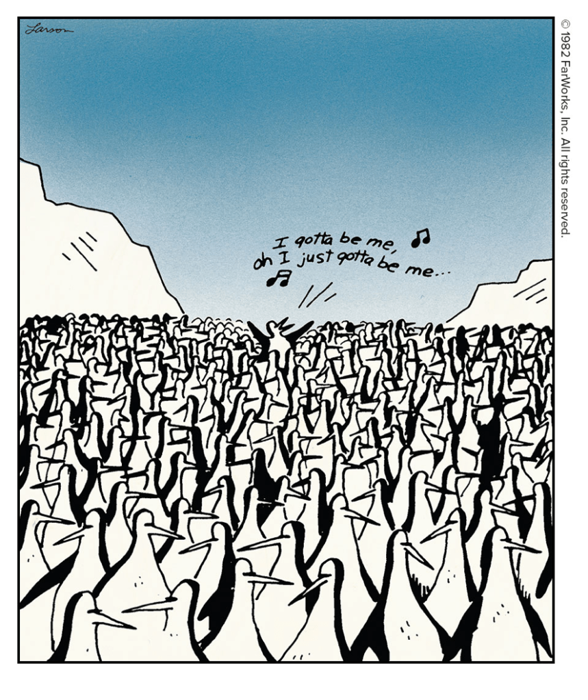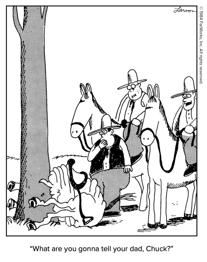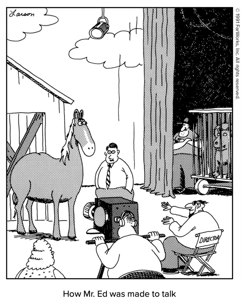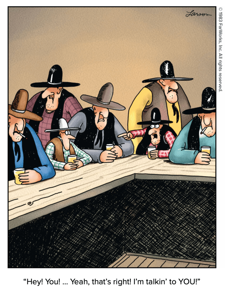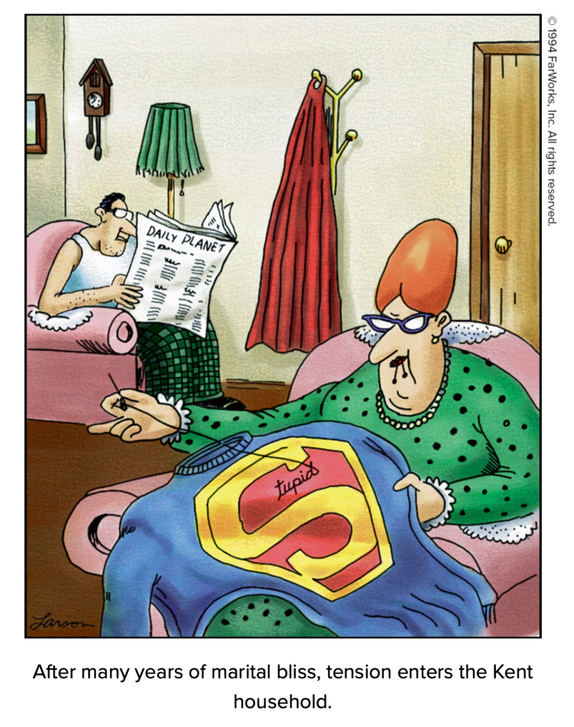 Larson breaking the fourth wall in his cartoons