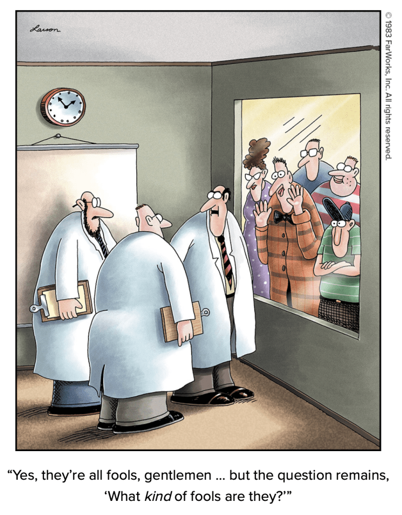 The best, most consistently funny, frequently hilarious, daily comic in the history of mankind. The Far Side by Gary Larson – view his official website here. I own most of his published cartoon anthologies and I can only say that about one other cartoonist – Bill Watterson and Calvin and Hobbes.