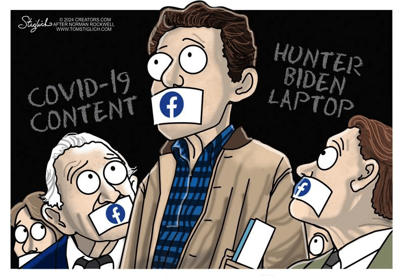 The Biden regime stole our freedom of speech and right to hear the Truth. The Zuck admitted that the White House and the FBI lied to them and put a lot of pressure on them to censor free speech.