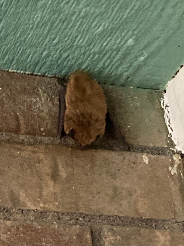 We’ve named him Bat Rastard. He isn’t really any bother except that he (or she) poops a lot and I have to sweep his droppings off the porch every several days.