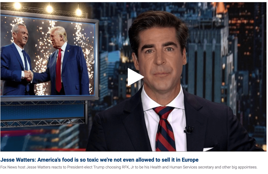 JESSE WATTERS: RFK, Jr. has been tapped to be secretary of Health and Human Services. Trump says RFK will make the department follow the science, not the money, be beacons of transparency and the chronic disease epidemic and make America healthy again… Big Pharma, Big Sugar, watch out.