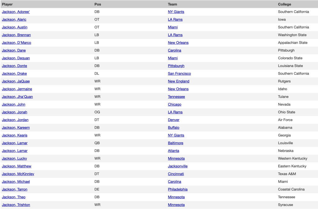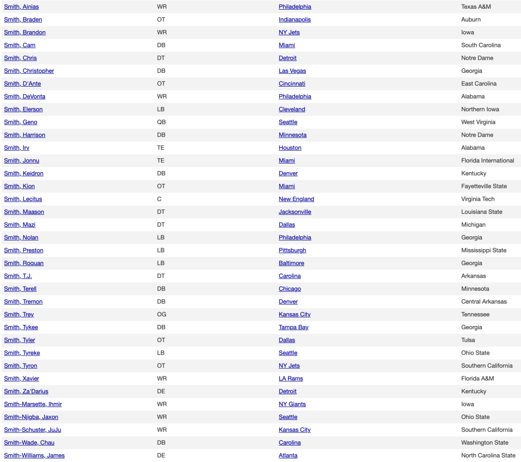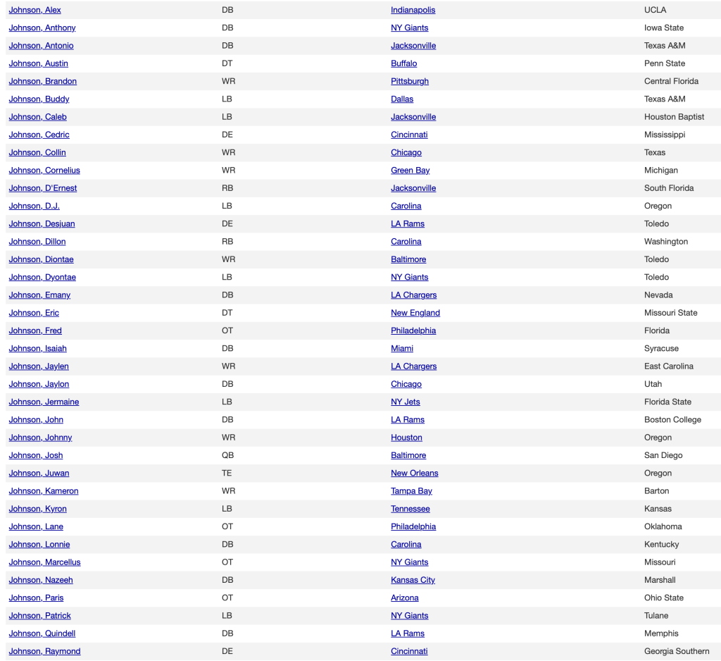 Johnson, Jones and Smith. Just like the phone book.