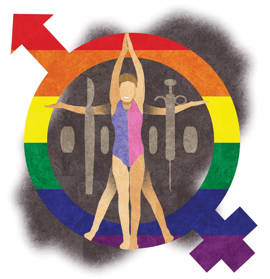 Transgenderism, gender identity and women’s sports illustration by Alexander Hunter/The Washington Times