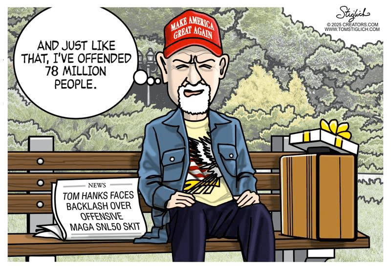 Tom Hanks, while a superb actor, like many superb athletes and other entertainers, is still kind of an idiot. He did not need a lot of method acting in “Forest Gump”. I watched this moronic skit and can call it: Skit for Brains.