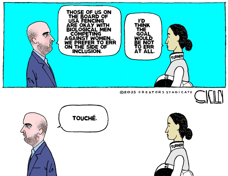 On March 30, Stephanie Turner was matched against Redmond Sullivan — a male — during The Cherry Blossom – D1A/VET ROC event in Maryland, hosted by USA Fencing. Turner, 31-year-old member of the Fencing Academy of Philadelphia, has been fencing for more than a decade. Before that she was a competitive gymnast. The night before the event, Turner saw that she would be competing against Sullivan, whom she had read about in an article last year. USA Fencing supports allowing males who identify as women to compete against female athletes. Since Sullivan switched from men’s fencing competitions to the women’s fencing competitions, he has blown women away, including at the Junior Olympics last December. This year, with “Wagner University NCAA” listed as his team, he finished 1st at the Connecticut Division Summer National Qualifiers earlier in March. “I knew what I had to do because USA Fencing had not been listening to women’s objections,” Turner said. When the time came to compete, she said she was shaky, but she did not falter. She took off her mask and took a knee. Watch this video to learn what happened next: |