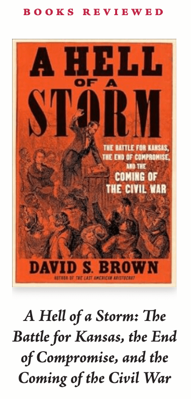 Brown himself does not deeply probe the miscalculation or attempt to provide a conclusive account of it. A professor of history at Elizabethtown College in Pennsylvania, Brown has written several books, including biographies of Andrew Jackson (see “King Mob,” Fall 2022), Henry Adams, F. Scott Fitzgerald, and Richard Hofstadter (nominated for a Pulitzer). In A Hell of a Storm he offers a description of America—a moving picture of the American Mind, increasingly agitated by the question of slavery expansion—in the pivotal year 1854: