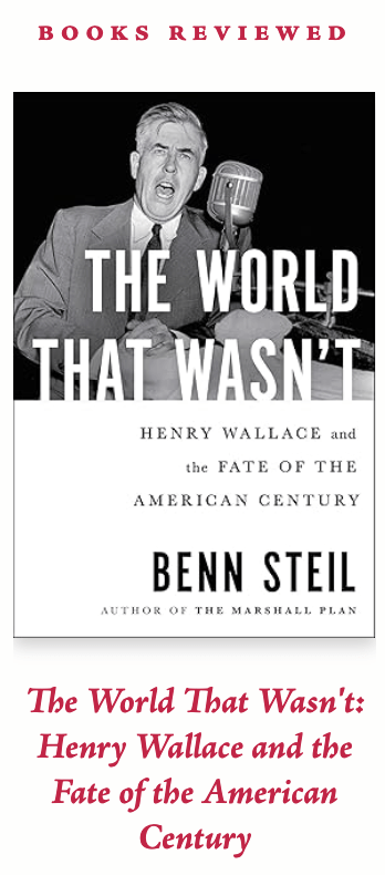 “With Henry Wallace in the White House,” Steil writes, “there would have been no Truman Doctrine. No Marshall Plan. No NATO. No West Germany. No policy of containment”—which would have meant no limits on Communist expansion across East and Southeast Asia, including not only China but Japan. “All of these initiatives, foundational to what has been called ‘the American Century,’ Henry Wallace opposed.”