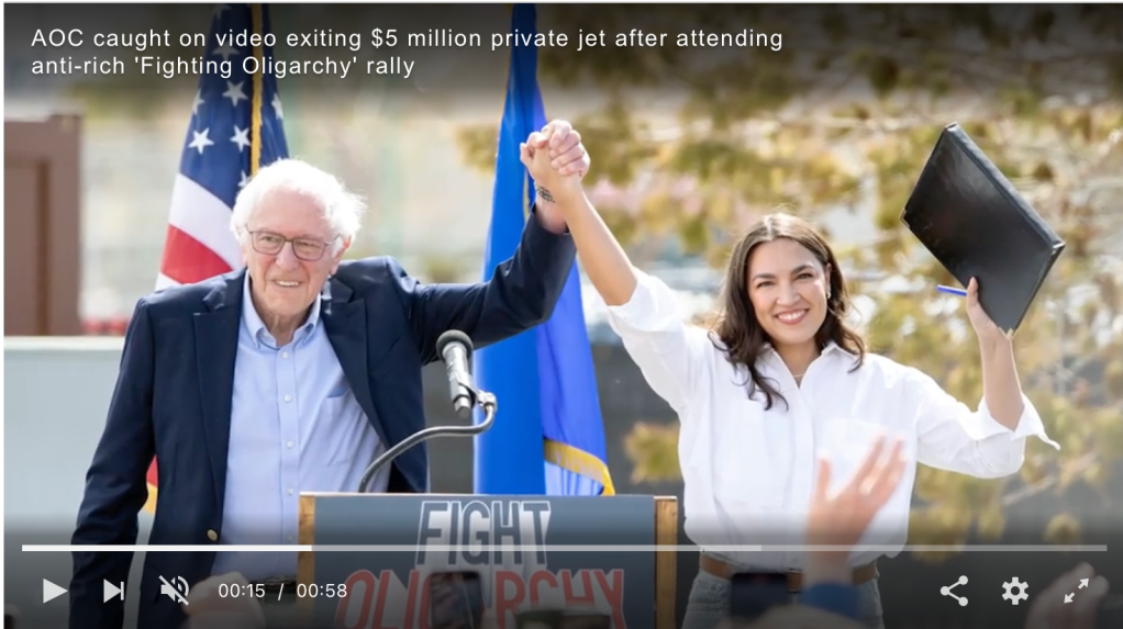 The cherry on top of the hypocrisy sundae for Sanders and AOC — both avowed eco-warriors — is the significant environmental impact of private jet travel.