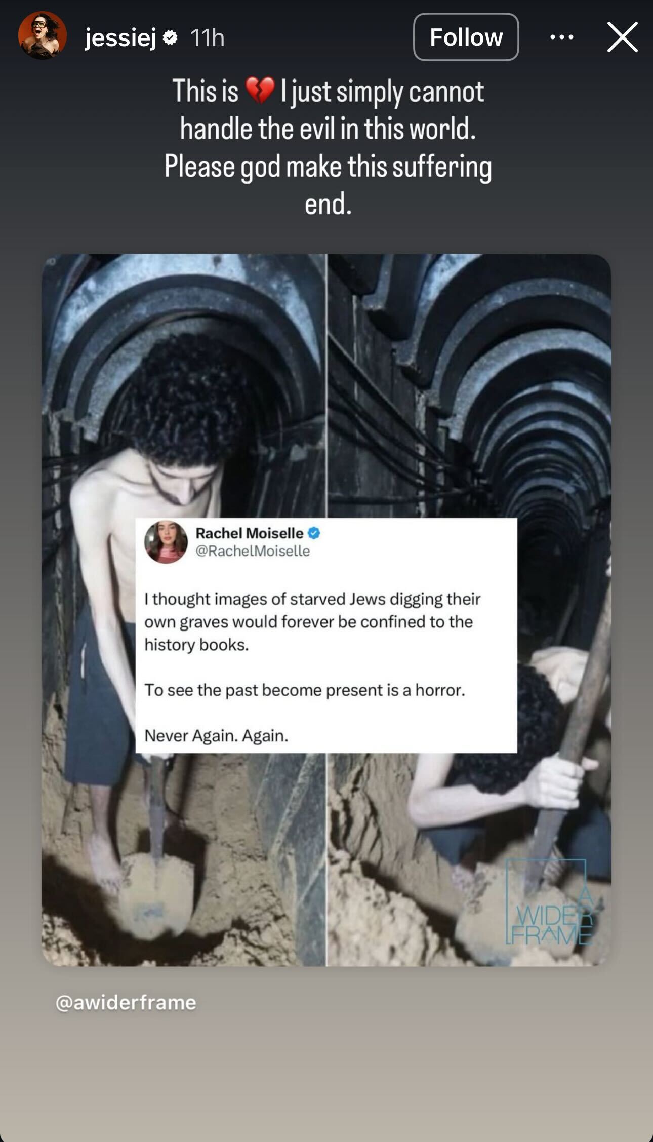 Jessie J shared her post to her 14.1 million followers, saying: “This is I just simply cannot handle the evil in this world. Please god make this suffering end.”