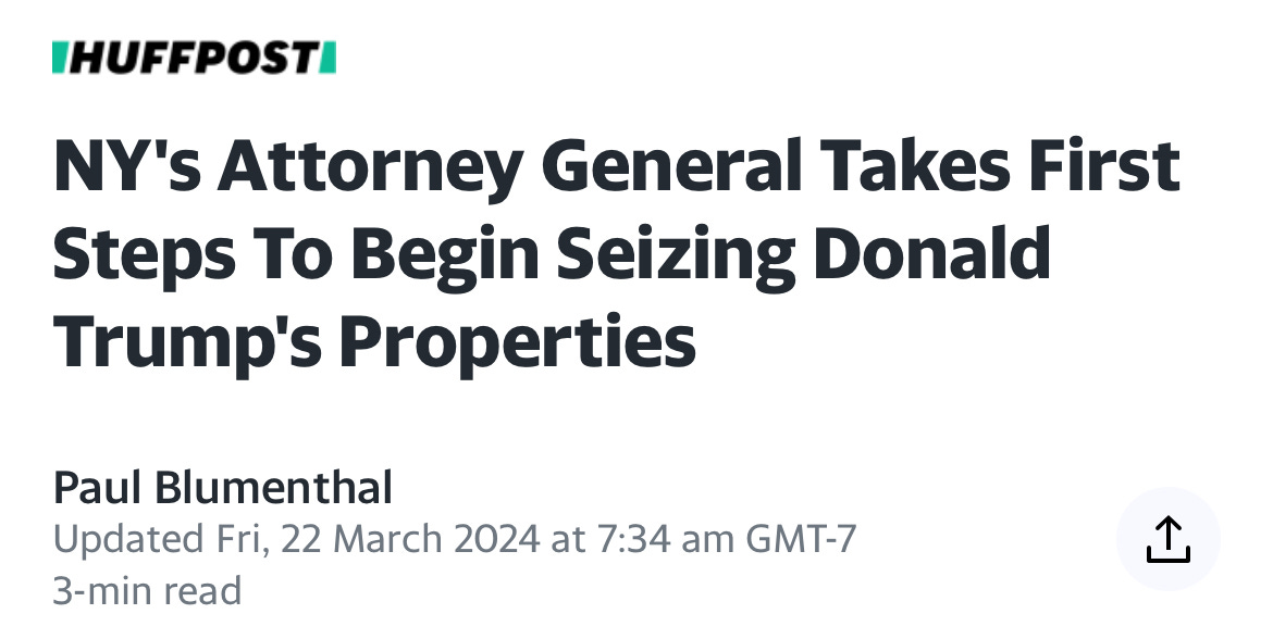 I was wrong. It turns out Trump does not have $500 million lying around to post a bond, which is a requirement for him to appeal the case. And it turns out that James is actively laying the groundwork to seize Trump’s assets. If Trump can’t post the bond by Monday, she may take them.