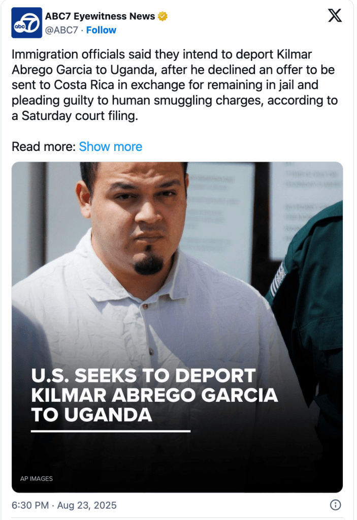 The pro-illegal immigration, pro-crime Left had their fun while it lasted. “Maryland Father” Kilmar Abrego Garcia was — outrageously — ordered temporarily released over the weekend in Tennessee, and was reportedly headed back to his ‘home’ state. Ahead of his arrival, federal officials reportedly informed his attorney of their intention to deport him to Uganda in the days to come. Sure enough, Abrego Garcia was arrested by ICE officers on Monday morning. This is a welcome and necessary development. The fact that he even got to spend any number of hours at all walking free on American soil is a travesty, but it appears as though the situation has been rectified. I case you weren’t following this chapter of the wider saga closely, here is a brief timeline of these developments, as relayed by Fox’s Bill Melugin, starting late last month. Shots: