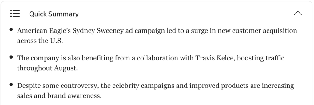 Its Sweeney campaign, called “Sydney Sweeney Has Great Jeans,” has generated attention and controversy since its introduction on July 23.