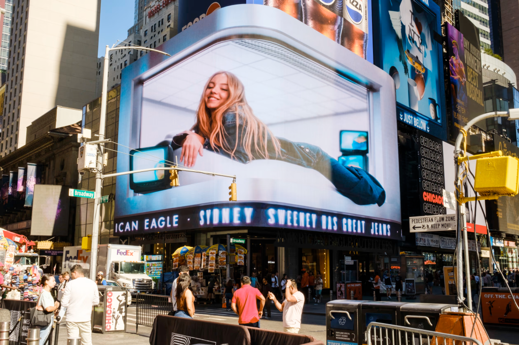 President Trump called American Eagle’s Sydney Sweeney ad campaign, seen here in Times Square, ‘the “HOTTEST” ad out there.’ Photo: Michael Bucher/WSJ