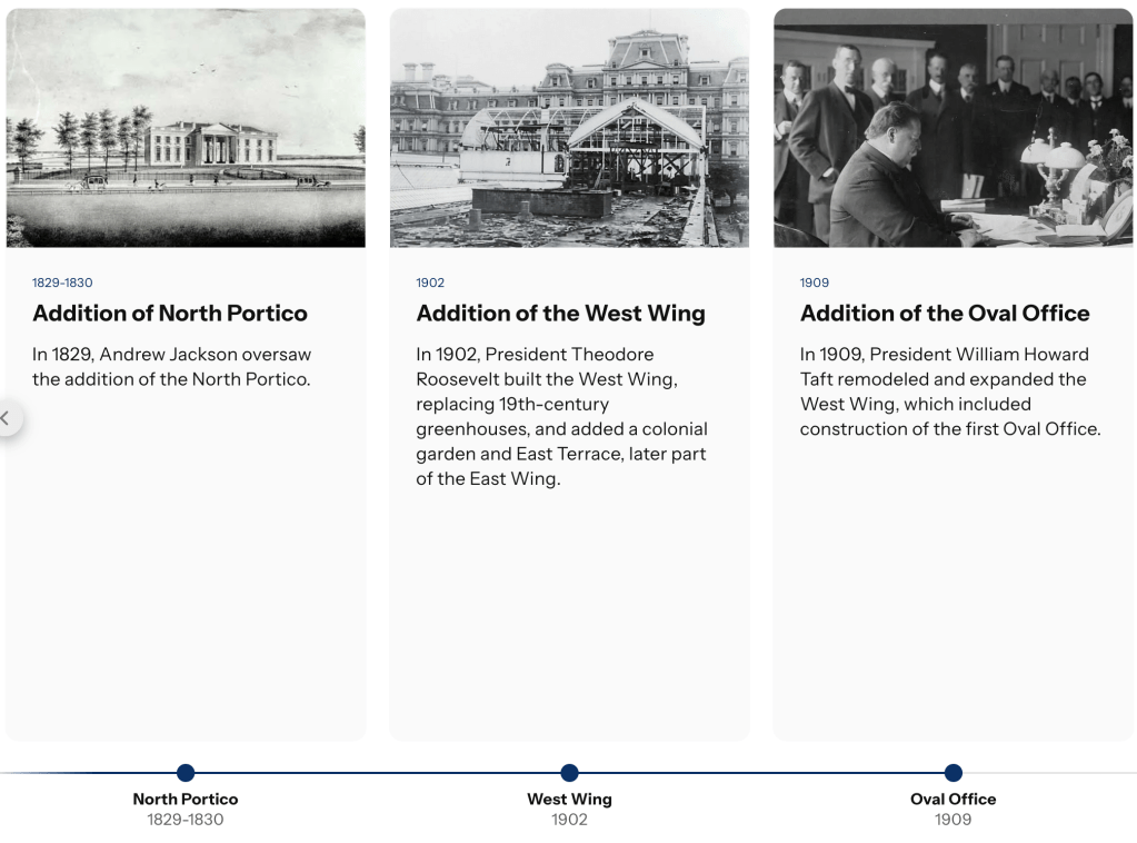Every president since John Adams has occupied the White House, and the history of this building extends far beyond the construction of its walls. From the Ground Floor Corridor rooms, transformed from their early use as service areas, to the State Floor rooms, where countless leaders and dignitaries have been entertained, the White House is both the home of the President of the United States and his family, and a living museum of American history. The White House remains a place where history continues to unfold.