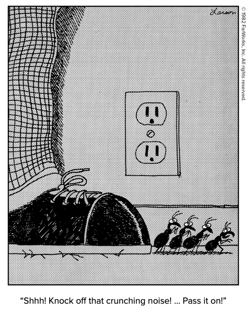 My cmnt: Below a very early (1980) Larson cartoon. Always interesting to see how a cartoonist’s artwork evolves over time.