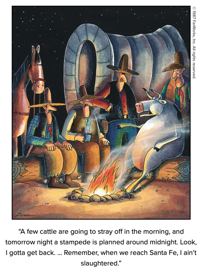 My cmnt: Tho’ Larson is not Jewish he often took a Jewish (as an unbeliever) view of God’s relationship to His creation and His Chosen People. A lot of the Jewish comedian’s humor is their view that God is out to get them.