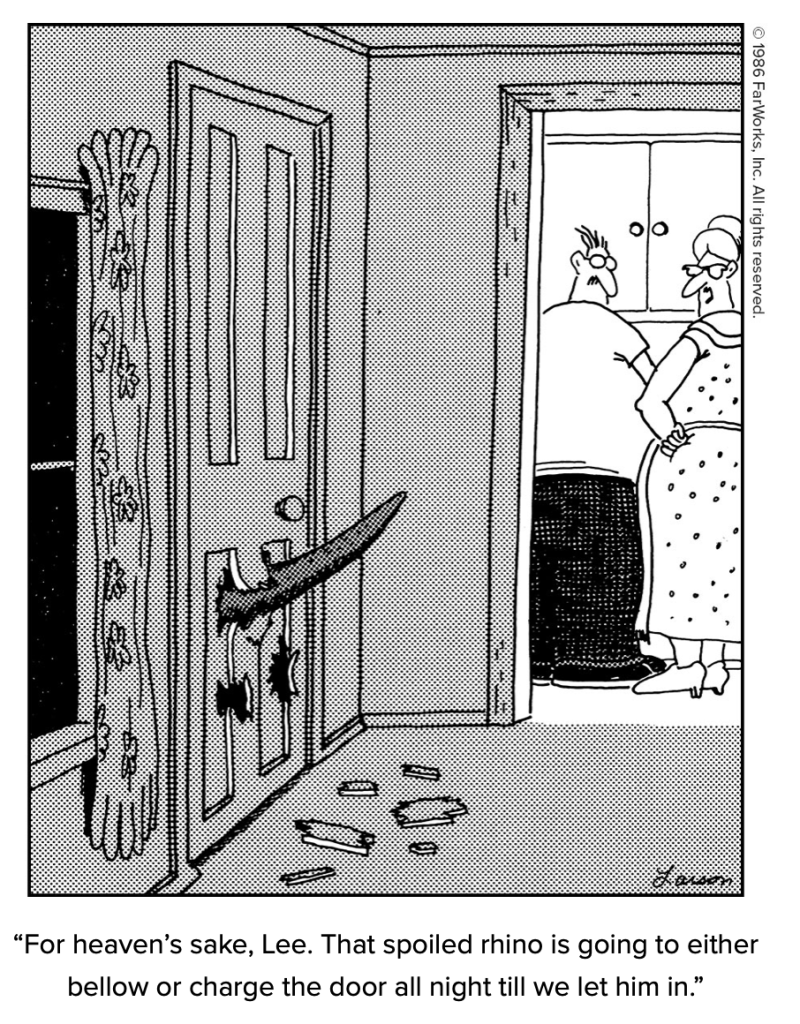 My cmnt: Not really funny. I think Larson is making a mild reference to the book “Where the Wild Things Are”.