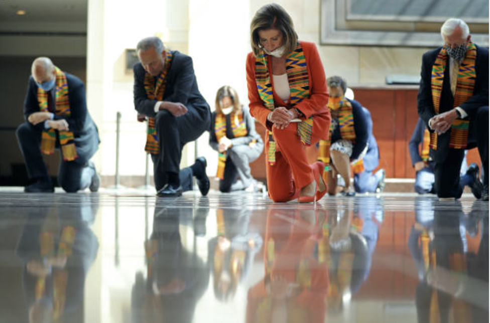 The theatrics from Democratic lawmakers, who wore kente stoles as they announced police-reform legislation, felt not just misguided but like an outright mockery. Photograph by Al Drago / Bloomberg / Getty