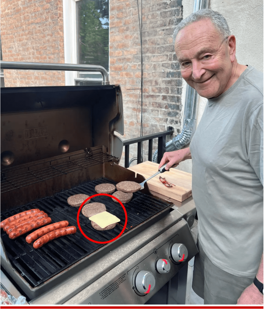 Democrat Senate Minority Leader Chuck U. Schumer pretending to grill on Father’s Day